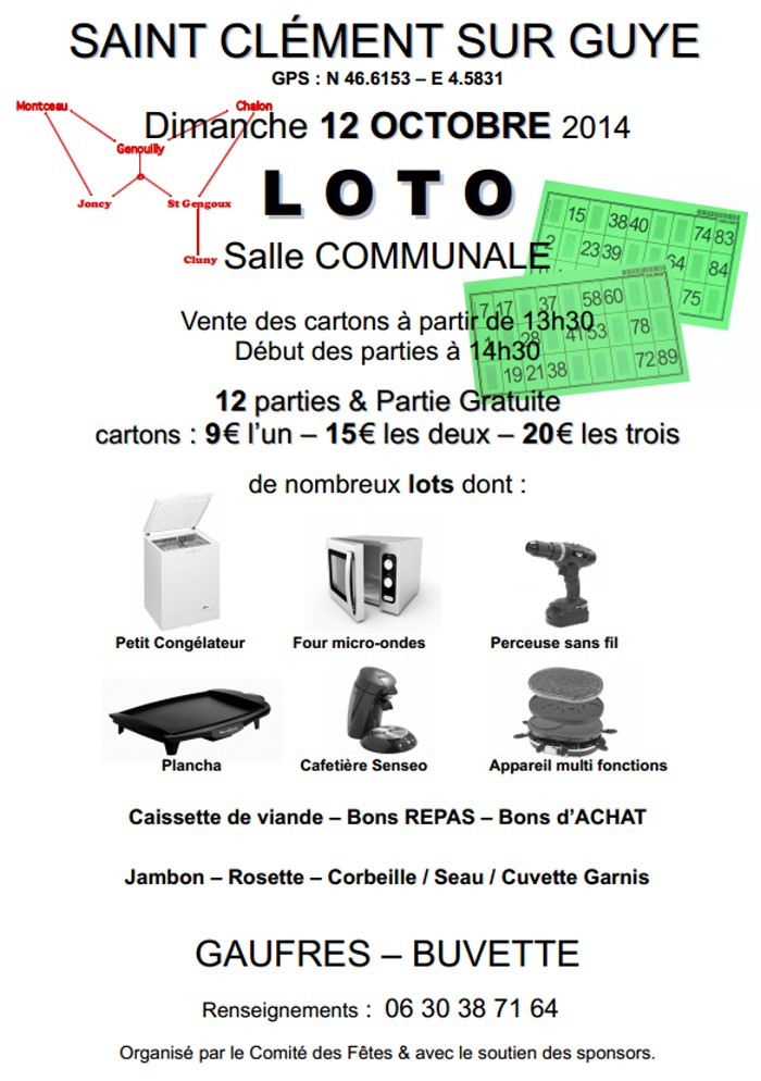 Loto, ce samedi 20 septembre 2014, à Génelard