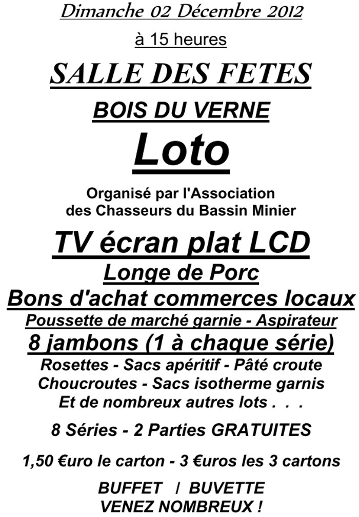 Loto, le dimanche 25 mars 2012, avec de nombreux lots à gagner